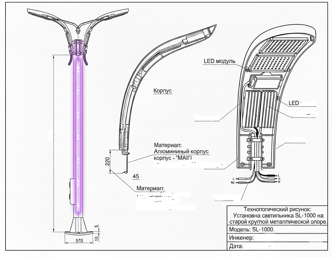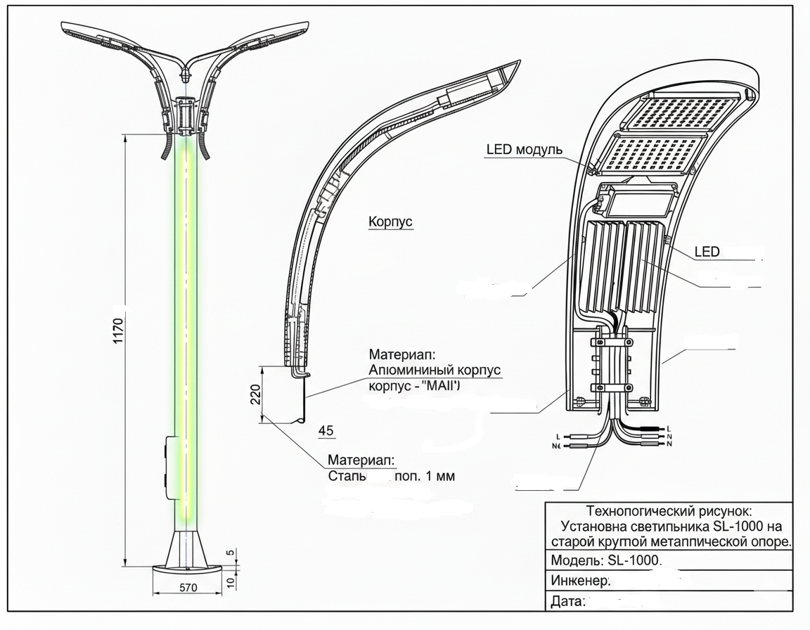 Возможность установки декоративных элементов — гербов городов или уникальных орнаментов — непосредственно на световые модули или тело кронштейна.